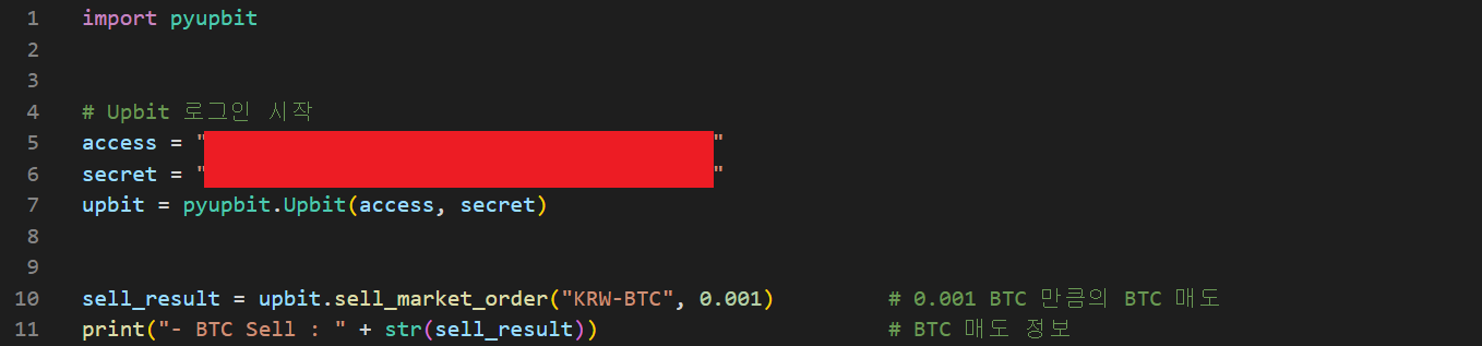 print("- BTC Sell : " + str(sell_result)) # BTC 매도 정보