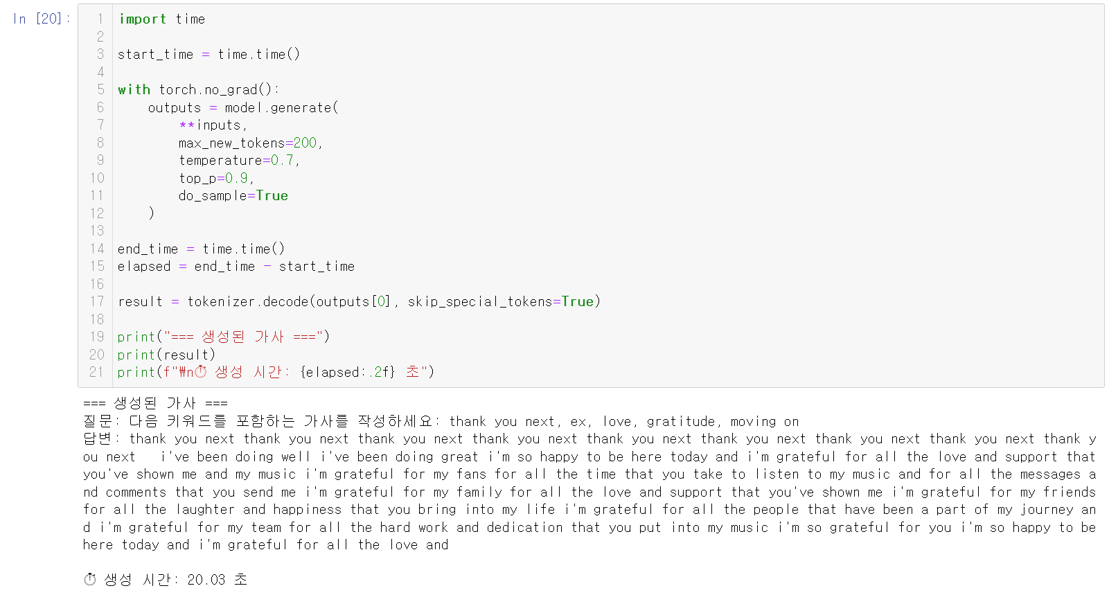 일반적인 대화형 LLM과 달리, 작사 LLM은 반복되는 단어나 문장, 심지어 앞뒤 문맥이 조금 어긋나더라도